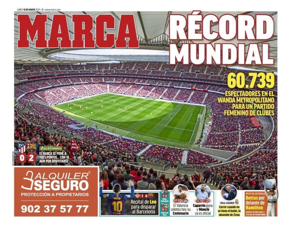 Buenas tardes, ayer record de asistencia, 60000 personas, a un partido de fútbol femenino,
