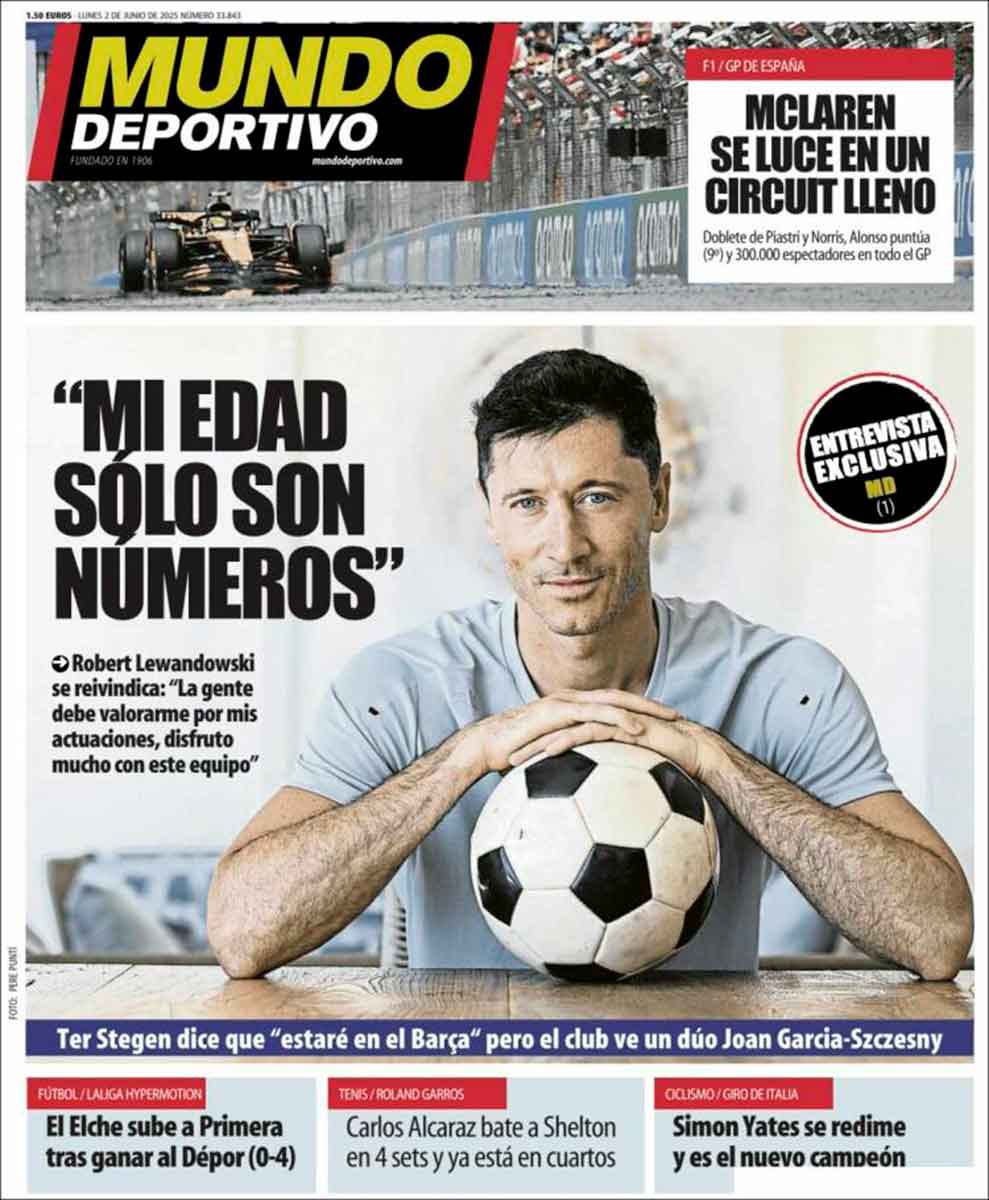 Lewandowski posa con un balón del 68 en la portada del diario de Godó, grande de España, y precisamente en el 68 se publicó Hey Jude, canción que ahora sirve para animar al 5 del Madrid, quien se divierte con su hermano no junto a un balón, sino junto a una boya. Porque el diario de Gallardo cree que en 2025 es lo más publicar fotos de personas en traje de baño en momentos de ocio privado y familiar.