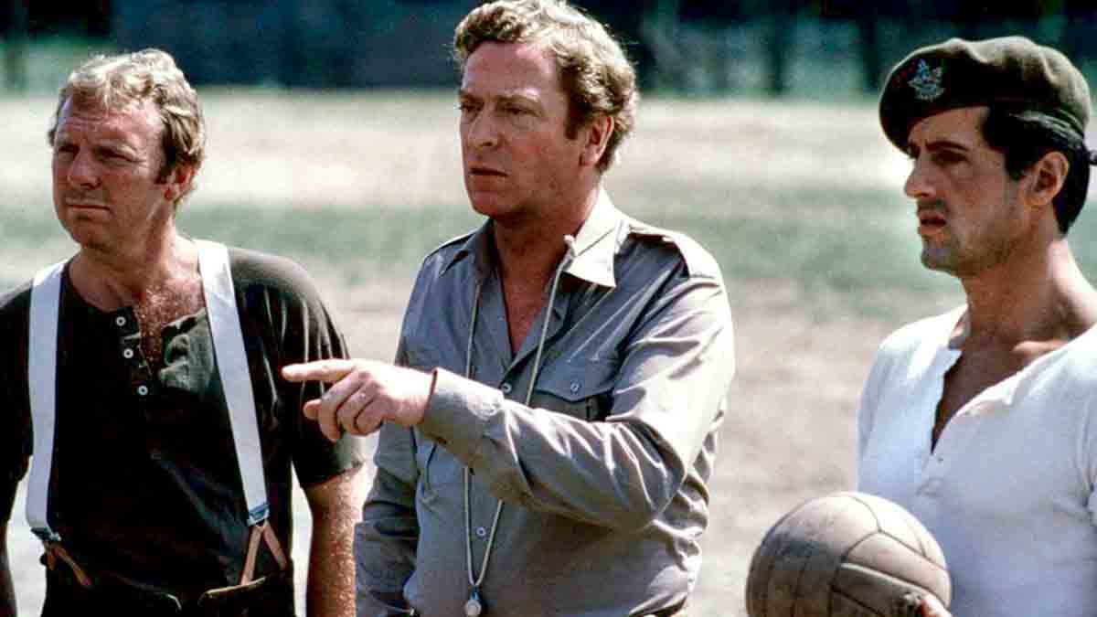 Nuevamente, el bien luchando contra el mal, algo recurrente en la vida y que estamos viviendo actualmente en el moribundo balompié español. Caine dirigió a un fabuloso equipo formado entre otros por su amigo el gran Pelé, Osvaldo Ardiles, Bobby Moore, Van Himst, John Wark (todos ellos futbolistas que fueron muy notables), acompañados en la portería por el torpe y entrañable guardameta Sylvester Stallone. El equipo alemán estaba capitaneado por el jugador del New York Cosmos Werner Roth.