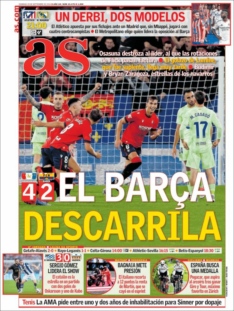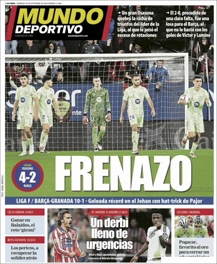 Por su parte, Mundo Deportivo, el diario de Godó, grande de España, describe el derbi capital como un choque “de urgencias”.