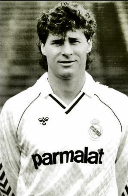 En el verano de 1987, el Real Madrid buscaba un defensa que supliese las continuas ausencias de Maceda por lesión y se fijó en el hombre que le quitó la Liga en 1983. Pagó 78 millones de pesetas al equipo pimentonero y se puso a las órdenes de Leo Beenhakker. El cuadro blanco dominaba en España con dos Ligas logradas de forma consecutiva y deseaba también extender esa hegemonía a Europa.