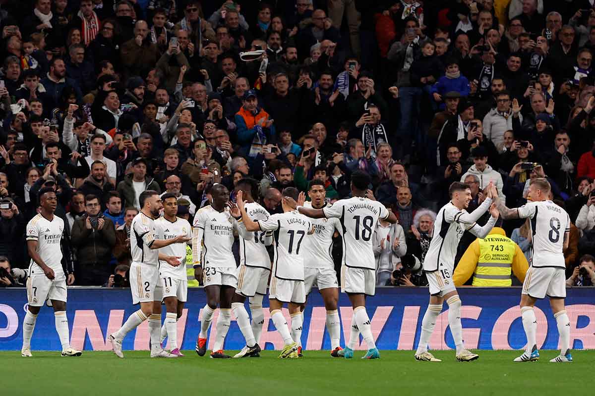 Y eso, que los últimos protagonistas en Chamartín están de enhorabuena. El Madrid le sacó tres puntos al Girona, otros tres al Atleti y dos al Barça. Los daños del segundo fueron mínimos: un solo punto le recortaron sus perseguidores, el punto culé, a falta del Almería-Athletic de hoy. San Bernabéu les bendice.