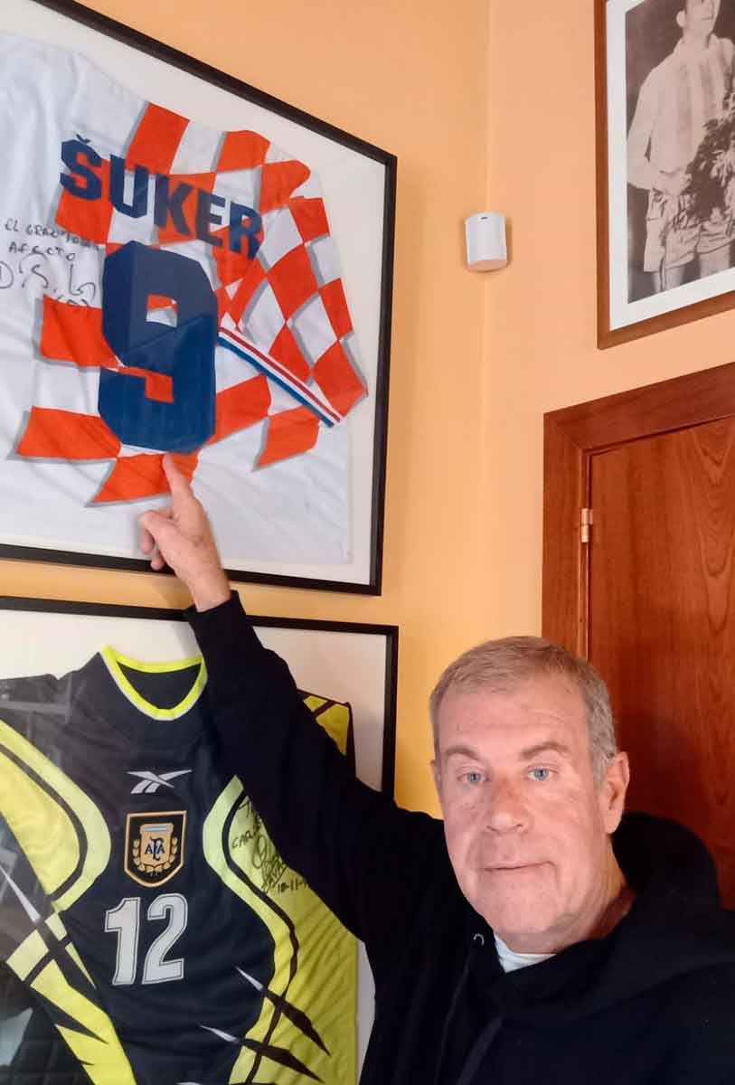 Ahí me ven, señalando la camiseta de Davor Suker, goleador de goleadores y presidente de la federación de su país. Va por él y por Luka Modric, que cuentan ya venció el Covid.
