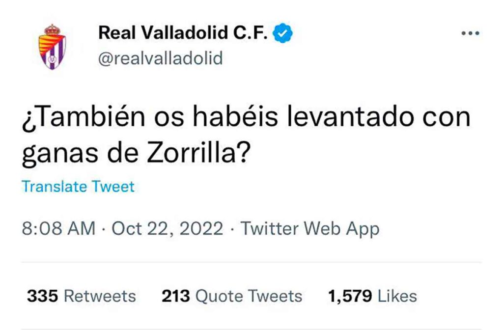 Se armó un escándalo. Los absurdos guardianes de no sé qué carajo bramaron. Ganas de Zorrilla, ¡a la hoguera con ellos! El club acabó borrando el mensaje. Fue lo único mal hecho en este episodio: ganaron los majaderos. Y no digo otra cosa porque estamos en las fechas que estamos. Un amigo lo guardó, ahí lo tienen.