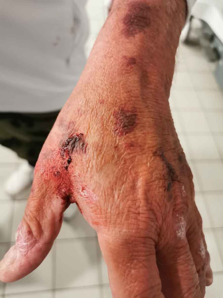 ¿La policía, dice usted? “Lo peor de todo fue su actitud, la de la Policía francesa, que en ningún momento nos ayudó. Ni a nosotros ni a tantas personas que pedíamos ayuda. Yo pedía por favor una ambulancia por las heridas que tenía, sangraba. Un guardia nos dijo a la gente que pedíamos auxilio que bienvenidos a Francia…La gente no sabía dónde ir, era un caos. Un ciudadano francés que pasaba por allí, al verme las heridas bajó de su coche y me dijo, ¡al Hospital! Me fui con él y sí, me llevo al más cercano donde pase la noche entre curas y observación del golpe en la cabeza. Lloré, sí, pero no por la agresión sino de rabia, por la ayuda no recibida por parte de la policía a unas personas heridas. ¡Eso es delito!”
