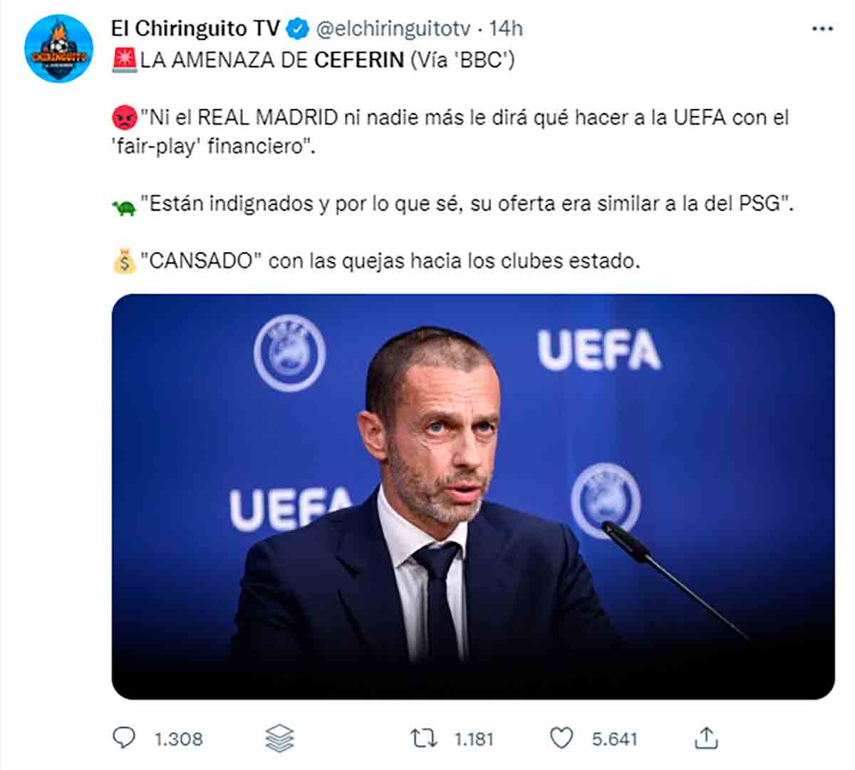 Entendemos que es duro vivir a la sombra, siendo un segundón, acomplejado, corroído por la envidia, sin margen legal de maniobra, pero al final siempre es más sano aceptar la realidad. Se nos ocurren varias frases célebres de Florentino para contestarle, pero la propia foto que ilustra el tuit sirve como respuesta.