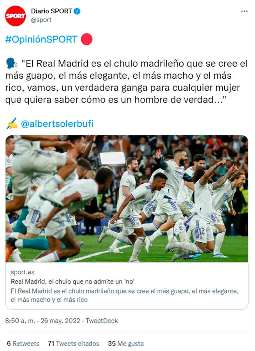 A que se refieren los infraseres de sport con "el Madrid es el típico chulo que no admite un no", acaso insinúan que el Madrid es un depredador sexual como el que tenían ellos en su cantera
