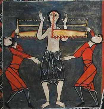 La imagen es el fragmento de un antipendio románico del siglo XII. Ignoramos en realidad quien es el tal “sir Kylian” que protagoniza la pintura, tal vez algún caballero medieval de las célebres Compañías Blancas. La pintura representa el momento en que sir Kylian acude a sus servicios médicos quejándose de un catarro y estos, de inmediato, le someten a sofisticadas pruebas clínicas utilizando la más puntera tecnología disponible. De ese modo logran comprobar sin el menor asomo de dudas que el catarro no reviste gravedad, a diferencia del tajo de sierra que divide el cuerpo de sir Kylian en dos mitades exactas y que los médicos de las Compañías Blancas han detectado gracias a su fino conocimiento de las últimas vanguardias en el tratamiento de dolencias. “Menos mal que vino a vernos, sir Kylian —dijeron los galenos, según la “Chronicae Merengorum” del maestro Afrodisio—; de no ser así, jamás se habría dado cuenta de que alguien ha partido su cuerpo con un serrucho.” Los médicos lograron curarle el catarro, pero se mostraron incapaces de restaurar la integridad de la dividida anatomía del caballero, de modo que lo ataron con una cuerda de tender y lo mandaron a París, a ver si en la Sorbona podían hacer algo con el asunto.