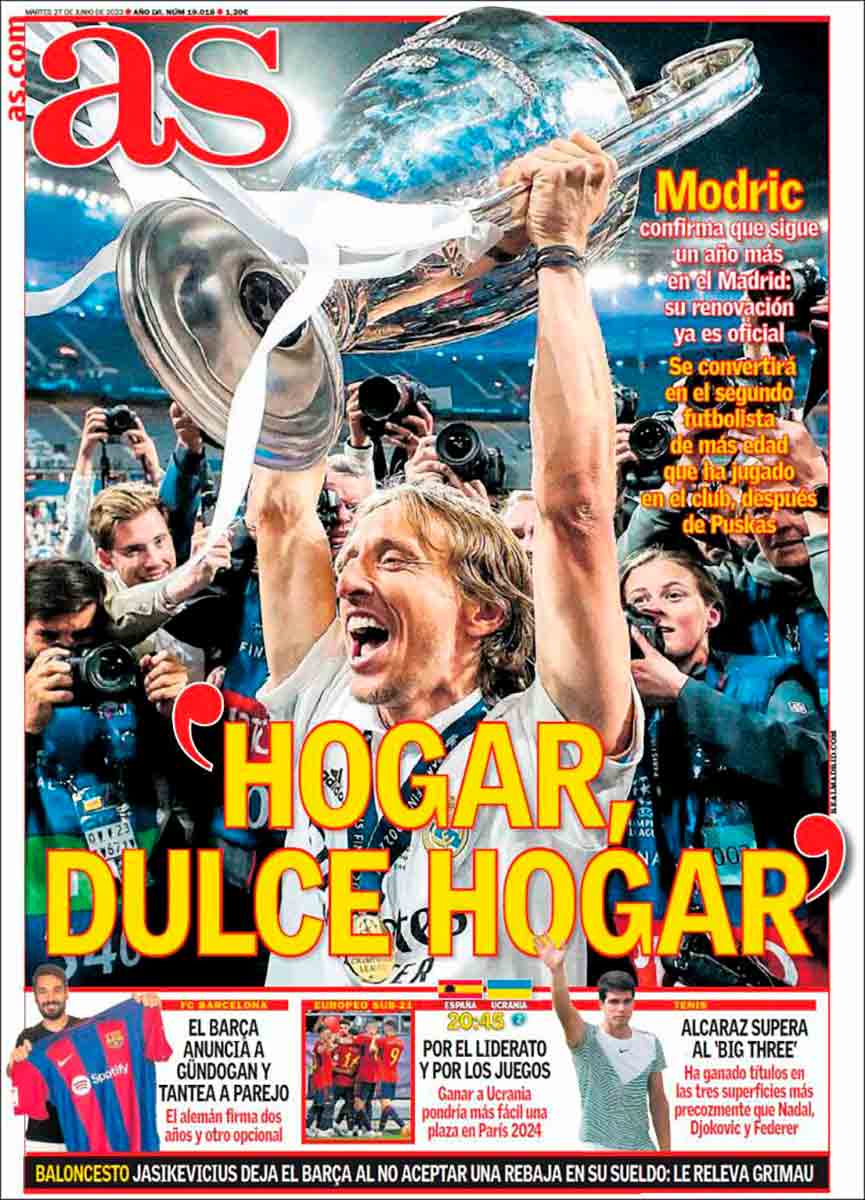 Ahí lo tienen. Triunfal en el As, seductor en el Marca. Lukita es croata pero como si fuera de Chamberí. Modric es gato y esta es su casa.