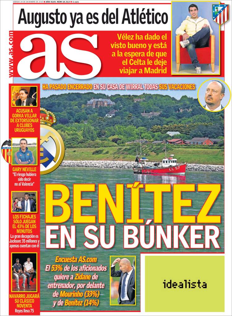 Agradecemos al diario As la lección de geografía que nos regala hoy. Nunca está de más conocer nuevos lugares y mucho menos deleitarnos la vista con fotografías tipo National Geographic. En la frondosa colina parece estar la casa de Benítez y en el sosegado mar fondea un pequeño barco pesquero que completa la bella estampa. Qué pena que la imagen quede enturbiada por palabras; qué lástima que Zidane se rasque la cabeza mientras se hunde en las procelosas aguas del Ouija Daily.