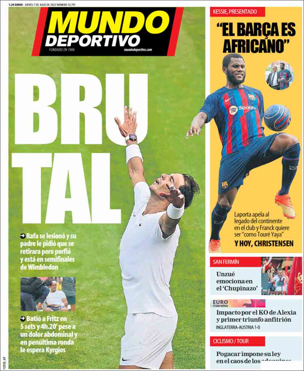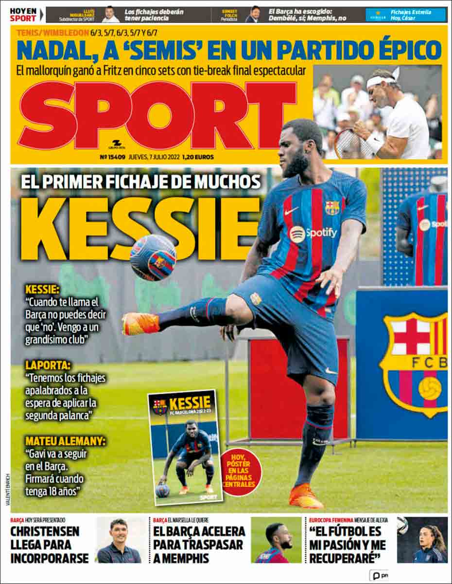 Sport, como veis, divide salomónicamente su portada entre Nadal y Kessié. Otros a quienes, como a Pedro Vallín, les encanta atender a los méritos contraídos. Por lo menos no hacen como Sport, que se la dedican casi íntegramente al exjugador del Milan.