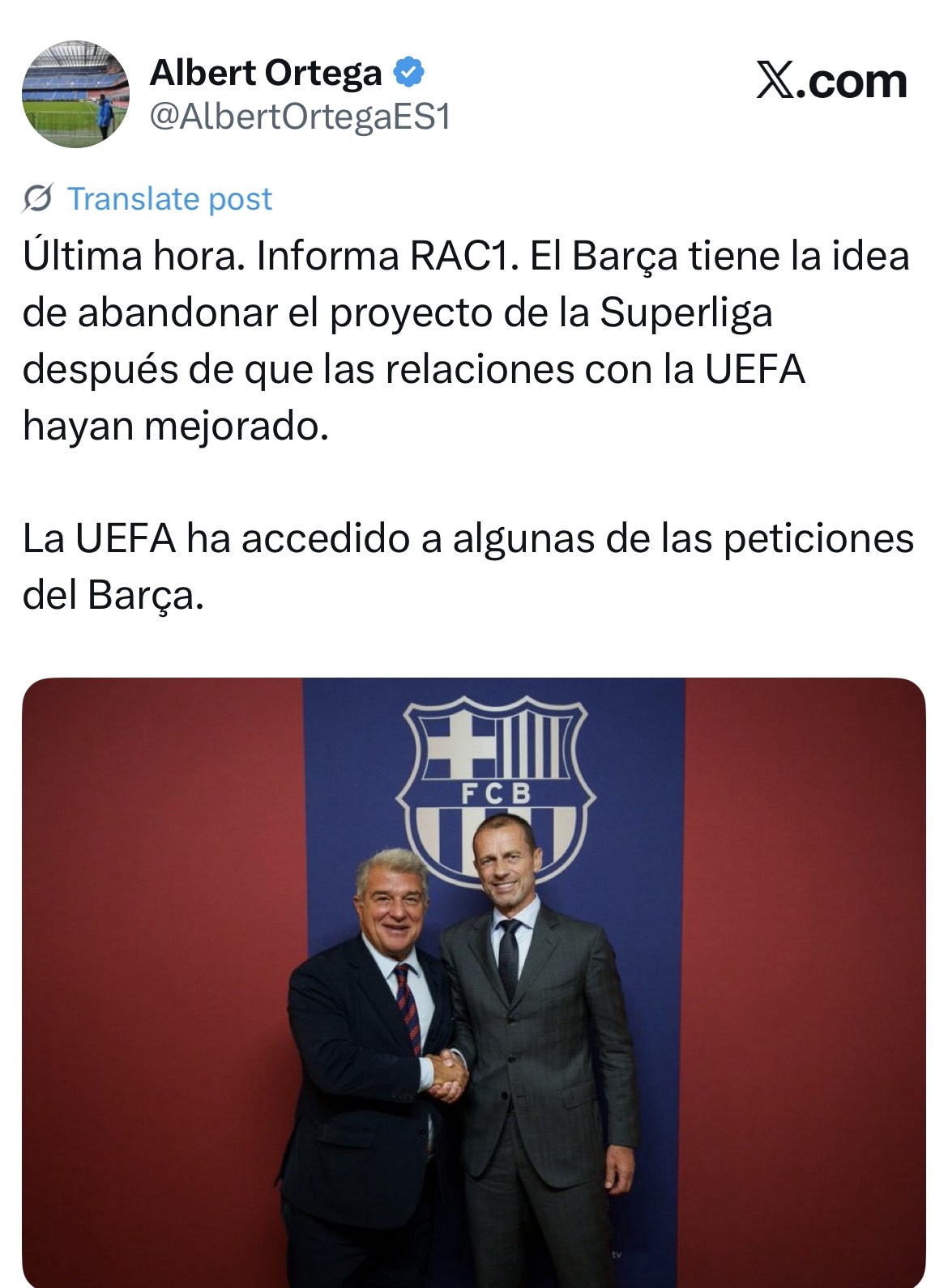Para abundar en la buena relación entre ambos estadistas, comenta ahora Albert Ortega, como explicábamos, que Laporta piensa renunciar al sueño de la Superliga. Si tal cosa ocurriera, y Jan cayera definitivamente en manos de Aleks y Nasser, no nos cabe duda de que Florentino Pérez reaccionaría de manera airada, pero como decíamos antes ni mucho menos esperamos que un hombre de palabra como Jan pueda traicionar a nadie, en este mundo ni en el próximo.
