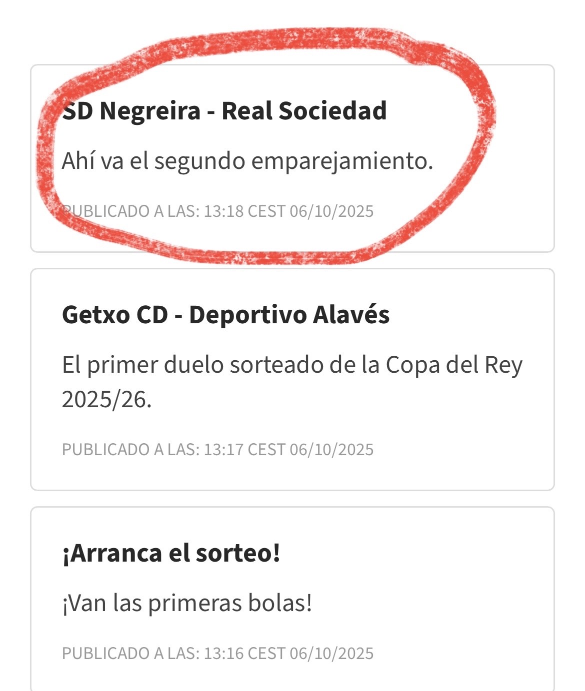 Al cierre de este portanálisis, hemos asistido al sorteo de la primera eliminatoria de Copa del Rey, en el cual la Sociedad Deportiva Negreira ha quedado emparejada con la Real Sociedad. Recordemos que Negreira es una bella localidad gallega, cuyos habitantes ninguna responsabilidad tienen en el descalzaperros del fútbol patrio.