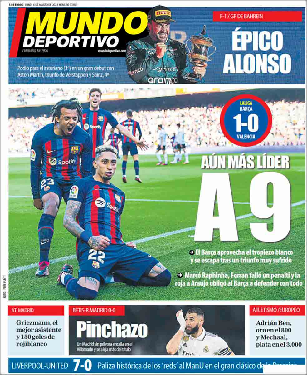 Pues oh, sorpresa. Marca tiene la decencia de poner en portada la foto de la jugada más importante de la jornada, aquella en que Kessié se abalanza sobre Fran Pérez y comete flagrante penalti que en principio podría haber dejado al Negreiça con dos puntos menos. No somos sospechosos de aprobar la línea editorial de Marca en los últimos tiempos, pero las cosas deben juzgarse aisladamente, sin enmiendas a la totalidad, y esta primera plana de los de Gallardo sí que nos parece, por vez primera en mucho tiempo, atinada. Enhorabuena.