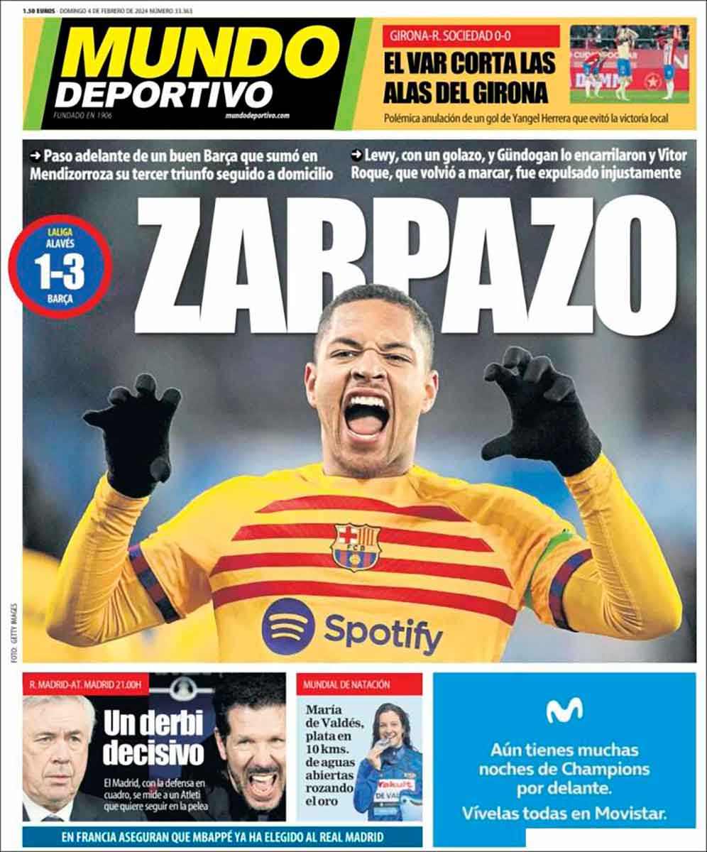 Mundo Deportivo abre con Vitor Roque imitando a un felino rugidor. Queda un poco ridículo, pero si le gusta hacerlo… Según este diario, el del salto del tigre fue expulsado injustamente. Está claro que sí, no hay más que ver la foto que colgó después Rafa Marín, receptor de la entrada de Roque.