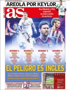Hoy al menos, la portada de As es la más "deportiva", al darle más importancia al sorteo de Champions, ofreciendo los cuatro bombos y sus integrantes.