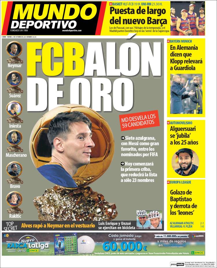 Deben aprender de Mundo Deportivo, que cierra nuestro portanálisis con un nuevo arranque de genio que enlaza con el mejor periodismo desde Mariano José de Larra, Woodward, Bernstein, Kapuscinski y Tomás Roncero. “FCBalón de Oro”. Con las tres letras en colorines para que a nadie se le escape tamaño mágico título. Lo han vuelto a hacer. Pensábamos que desde el excelso “ Se RetARDA” no serían capaces.