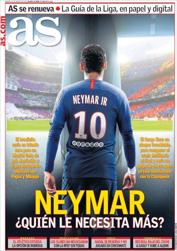 Neymar sí: si viene casi gratis y con Mbappé debajo del brazo. Si no, que se lo queden donde lo necesiten.