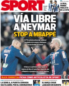 Con todo, Sport no se conforma con tratar de aplicar al alicaído barcelonismo el paño caliente de la ficticia llegada de Neymar, sino que por el mismo precio y en la misma portada pretende derrumbar las esperanzas blancas de hacerse con Mbappé (“... y declarará intransferible al francés”). Nos preguntamos si de verdad es posible ser más pueril y tomar por idiota a tu lectorado de una manera más estomagante.