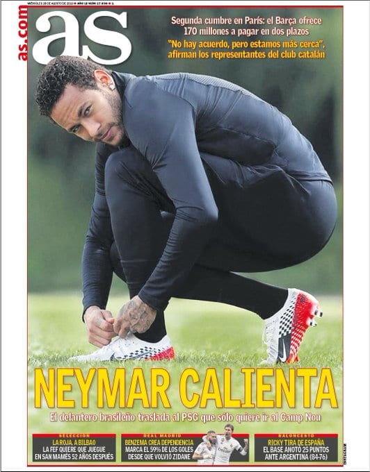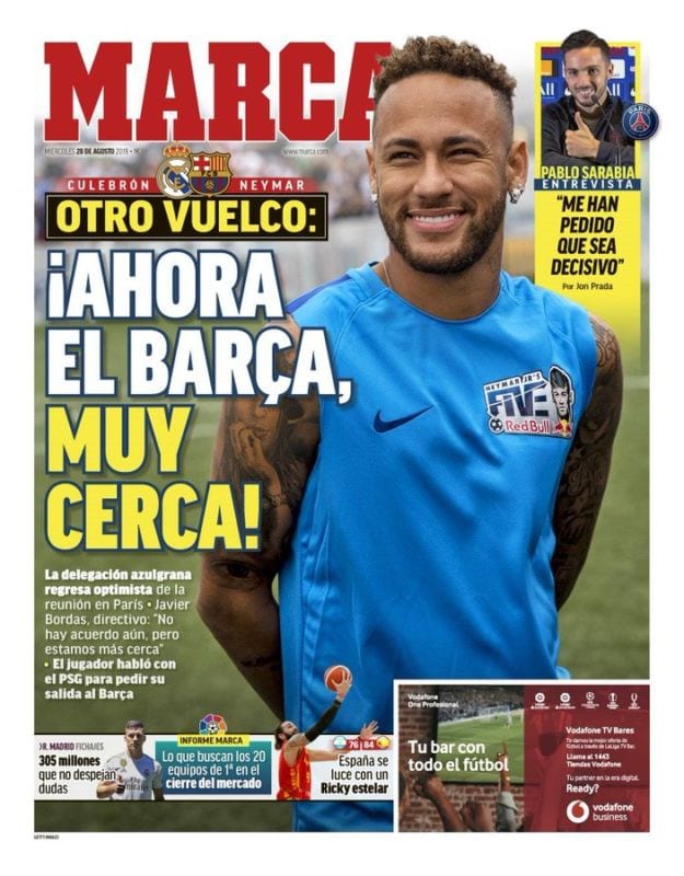 Cuando leí que Messi había pedido a Neymar supe que harían todo lo posible por traerlo. Y sobre el Real Madrid, creo que nunca ha estado verdaderamente interesado. Demasiado caro. A otro precio, quizá, pero así, no. Y me parece bien. Lo que no me parece bien es que no se fiche a nadie más, por Dios, necesitamos reforzar el centro del campo, sobre todo. No entiendo la falta de fichajes.