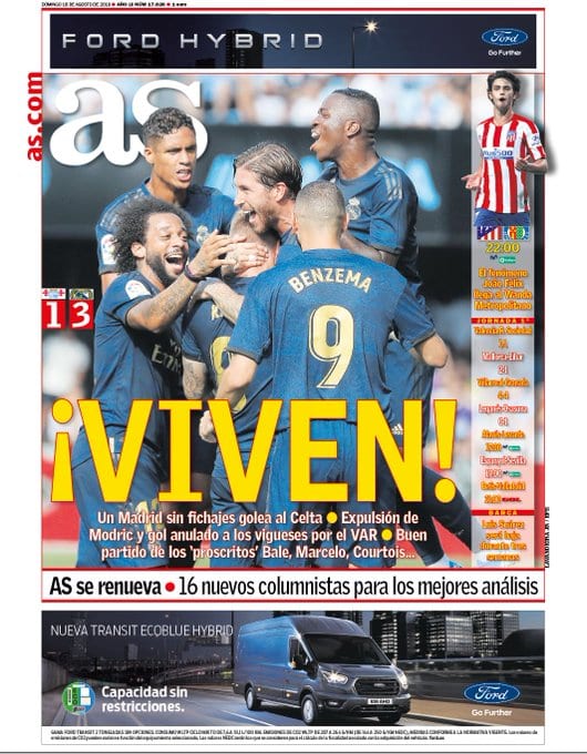 Buenos días. Os vamos a dejar, para empezar, las portadas de 'Sport' y 'Mundo Deportivo' a ver si con ellas sois capaces de adivinar cómo quedó el Real Madrid este sábado en Balaídos.