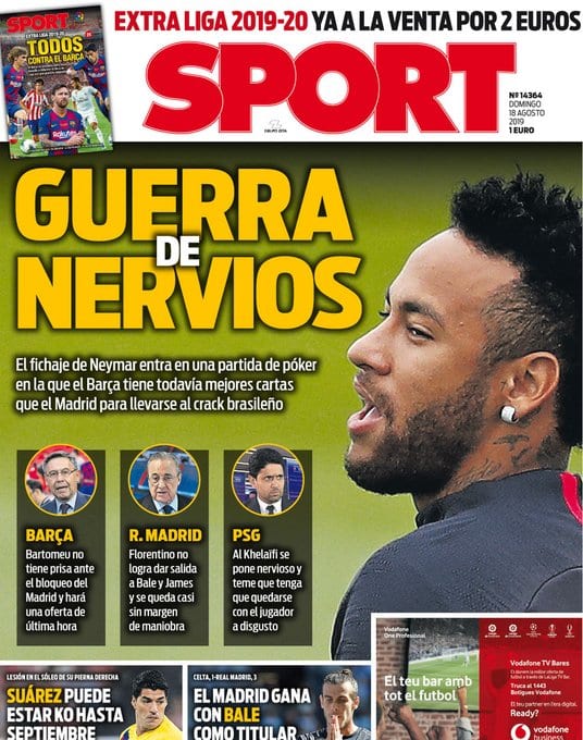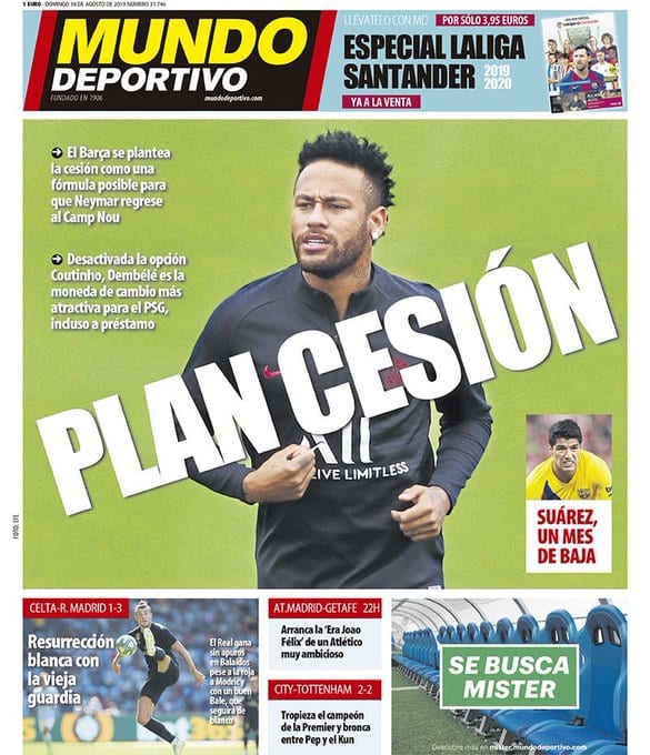 Volviendo a 'Sport' y 'Mundo Deportivo', lo cierto es que nos olíamos la tostada, y más con el culebrón Neymar candente. Tras la derrota culé en San Mamés, cualquier buen resultado merengue en Vigo sería tapado por el hombre que se fue por la puerta de atrás y ahora suspiran por su regreso por la puerta grande. Allí son así.
