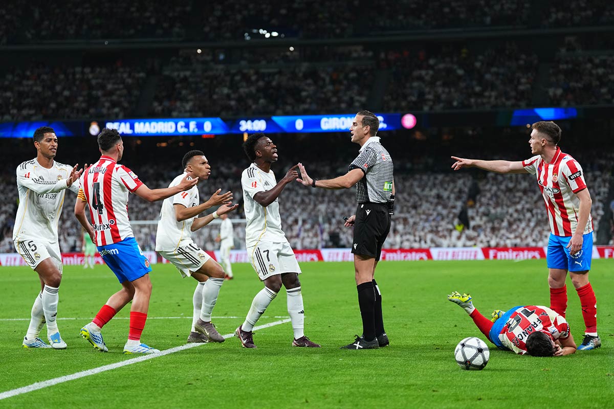 Te pegan un codazo como a Fran García y ni siquiera le sacan tarjeta al que golpea, le dan el mismo golpe a Mbappe en el área que al jugador del Girona fuera del área y a Mbappe le sacan tarjeta y al del Girona, no. Mbappe sangrando y ni entra el VAR. El año pasado vas al campo del español y entra por detrás a Mbappe y ni siquiera ve tarjeta roja el del español, que luego marca el gol del partido.