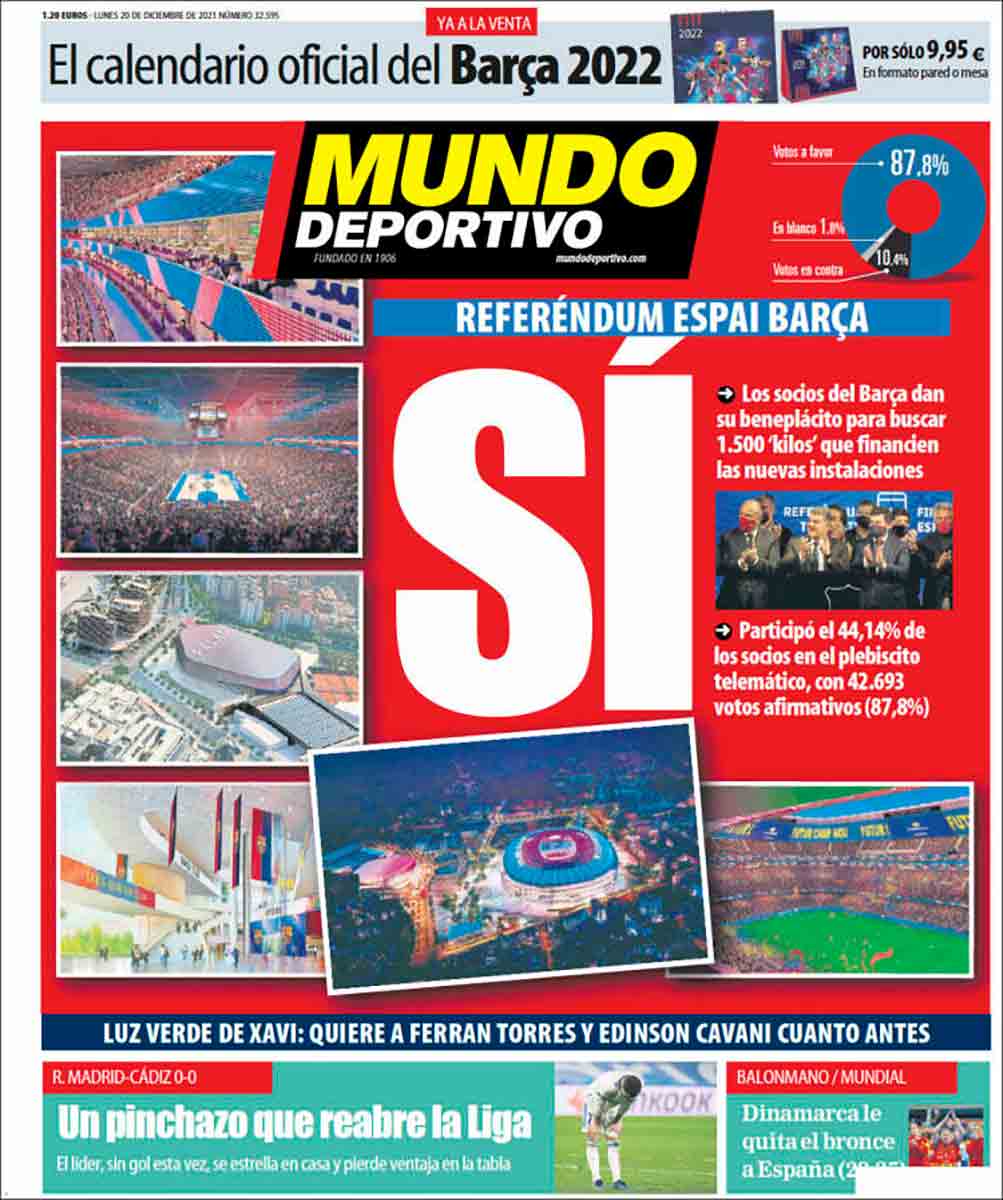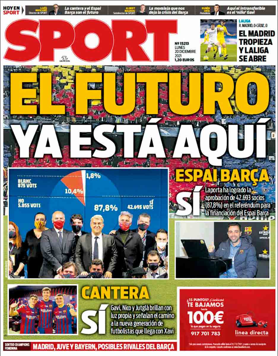 Pero estábamos con la prensa cataculé, que está eufórica porque los socis han aprobado el Espai Barça, que es como si los compromisarios del Madrid hubieran aprobado ayer el Nuevo Bernabéu. Si el Madrid le lleva al Barça años y años de ventaja en eso también, como en tantas otras cosas, se dice y no pasa nada. Se dice al menos antes de que la señorita Rottenmeier determine que no hay que decirlo y Movistar nos evite y las portadas nos ninguneen.
