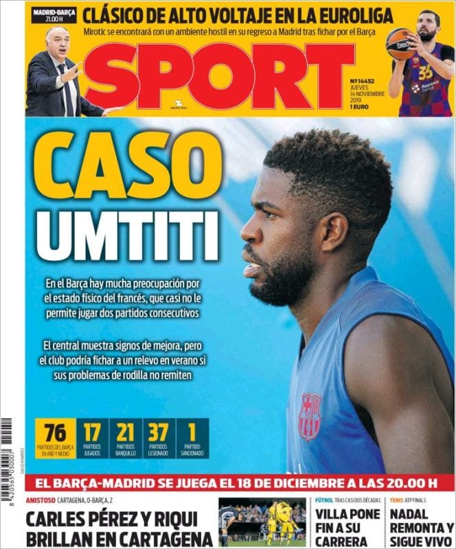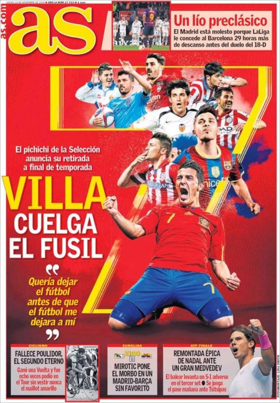 Buenos días. Si hoy comenzamos esta bendita sección con las portadas de As y Mundo Deportivo no es porque queramos comentar en profundidad la jubilación de David Villa (a quien desde aquí, con admiración, deseamos lo mejor en su vida lejos de los terrenos de juego), ni porque deseemos glosar el amistoso que el Barça jugó en beneficio de las víctimas de la gota fría en Cartagena (loable iniciativa por su parte), sino porque en ambas instancias el baloncesto viene a las primeras planas de ambos rotativos, bien es cierto que en diminuto, y hoy el baloncesto tiene un protagonista indudable por lo que es y por lo que representa. Se llama Mirotic y esta noche juega en el Wizink Centre madrileño ante la que fue su afición, pero vistiendo la camiseta del eterno rival.