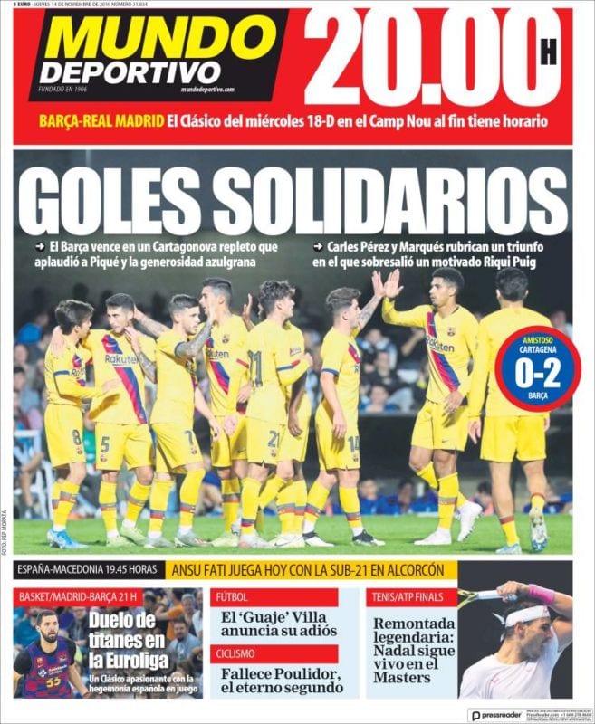 El As dice en la parte superior que "el Madrid está molesto" por el menor descanso, pero, pregunto, de modo inocente de verdad: ¿alguien del Madrid se ha pronunciado sobre esta nueva sinvergonzonería de Tebas? Que nadie olvide que al partido del 26 llegaba el Madrid con un día más de descanso que el VARça, por primera vez en años, y el socio de Piqué fue el responsable principal del aplazamiento y ahora de la nueva fecha, ¿de verdad ha dicho algo, ha protestado aunque fuera mínimamente, algún directivo? Y si no es así, ¿qué sabe ese medio manipulador de lo que siente ese ente que define como "el Madrid"?, en el que sabemos que no tiene ninguna mano ni conocimiento de lo que ocurre. En fin, de pena. Lo que me gustaría: puñetazo en la mesa, denunciar, protestar, advertir que no se va a tolerar que se juegue con las pancartas, amenazas o toda la parafernalia habitual del entorno del CDR Barcelona. Largarse del campo al mínimo lanzamiento de objetos, y cera en los medios. A la manera de Mou, el primero en criticar el calendario casualmente siempre malintencionado. Sé que no ocurrirá nada de esto.
