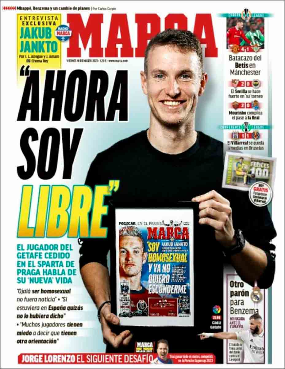 Marca entrevista a Jankto, el futbolista que salió del armario y que ojalá sirva de ejemplo para que por fin se genere un ambiente de libertad en el balompié. As detalla el indiscutible desastre del PSG, que no nos hace llorar precisamente. Y la prensa cataculé está a sus cositas, un poco como la orquesta del Titanic pero, a diferencia de dichos músicos, tal vez ignorantes del hundimiento.