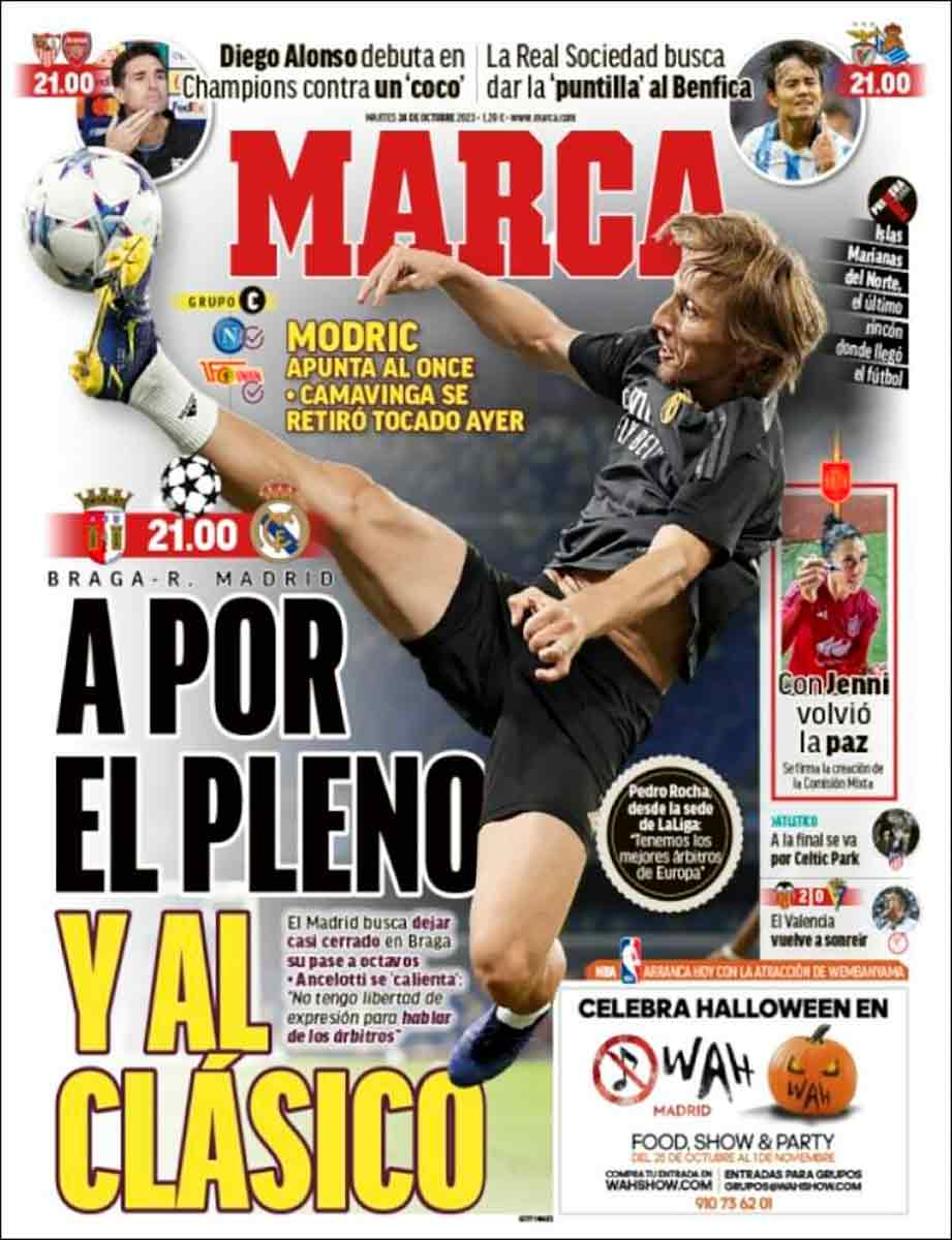 Nos despedimos recordando que hoy jugamos en Braga, y no nos referimos a la indumentaria, esperemos que los lusos no nos pillen en ídem y el Madrid logre un nuevo triunfo en Champions.