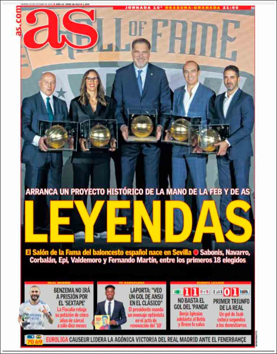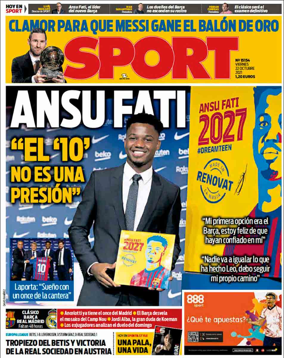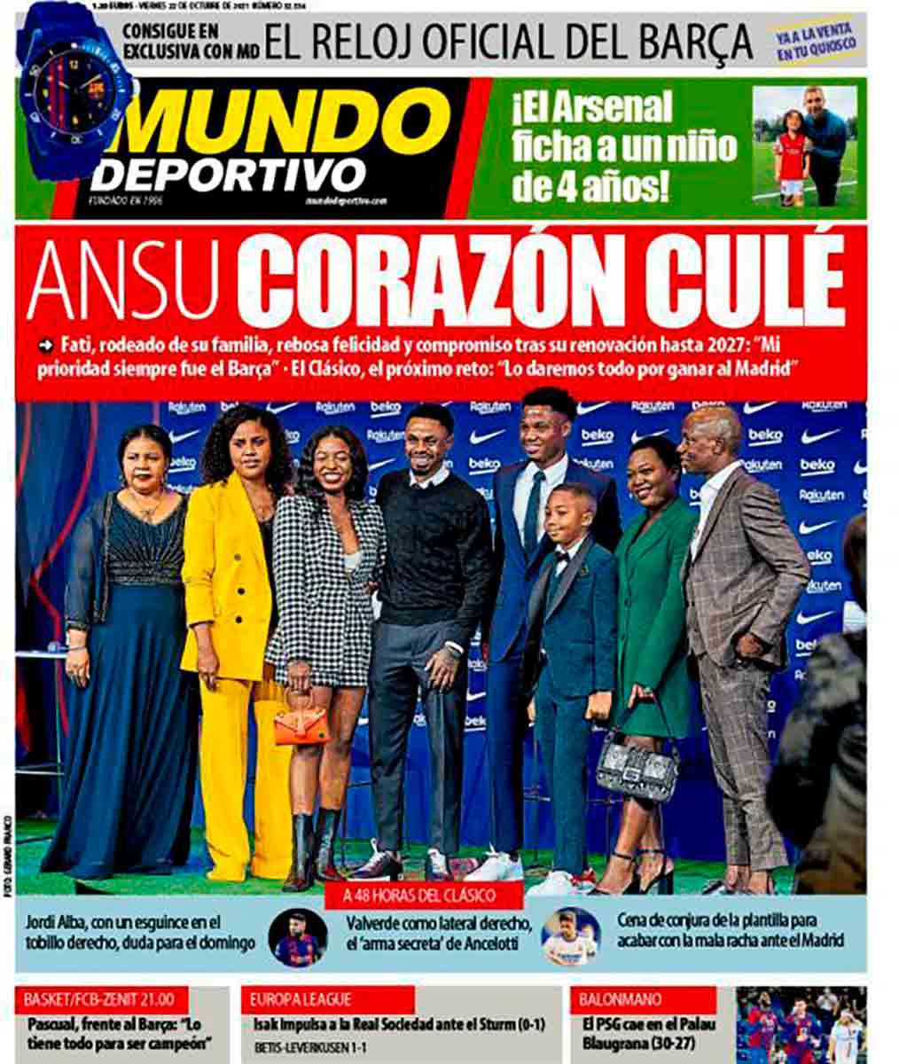 Por lo demás, amics, As organiza otra cosa de baloncesto y Ansu Fati renovó hace unos dos meses y medio, aunque es hoy cuando hay hueco para él en las portadas. De verdad que no esperábamos el tema tan soso en esta mañana de vísperas de Clásico.