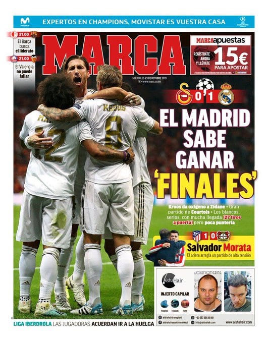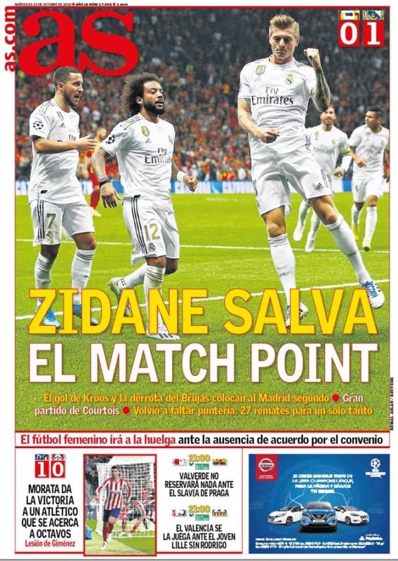 'Marca' recuerda que hay partidos en los que el Real Madrid se dedica a ganar y punto. El del Galatasaray era uno de ellos. Había que ganar y se ganó. El cómo lo guardamos para otra ocasión en la que el alambre sea menos estrecho. 'La Ouija Today' intenta hurgar algo en una herida que podría ir cicatrizando. "Zidane salva el match point", resume, como si eso no fuera lo que ellos querían. Lamentamos el desenlace, amigos.