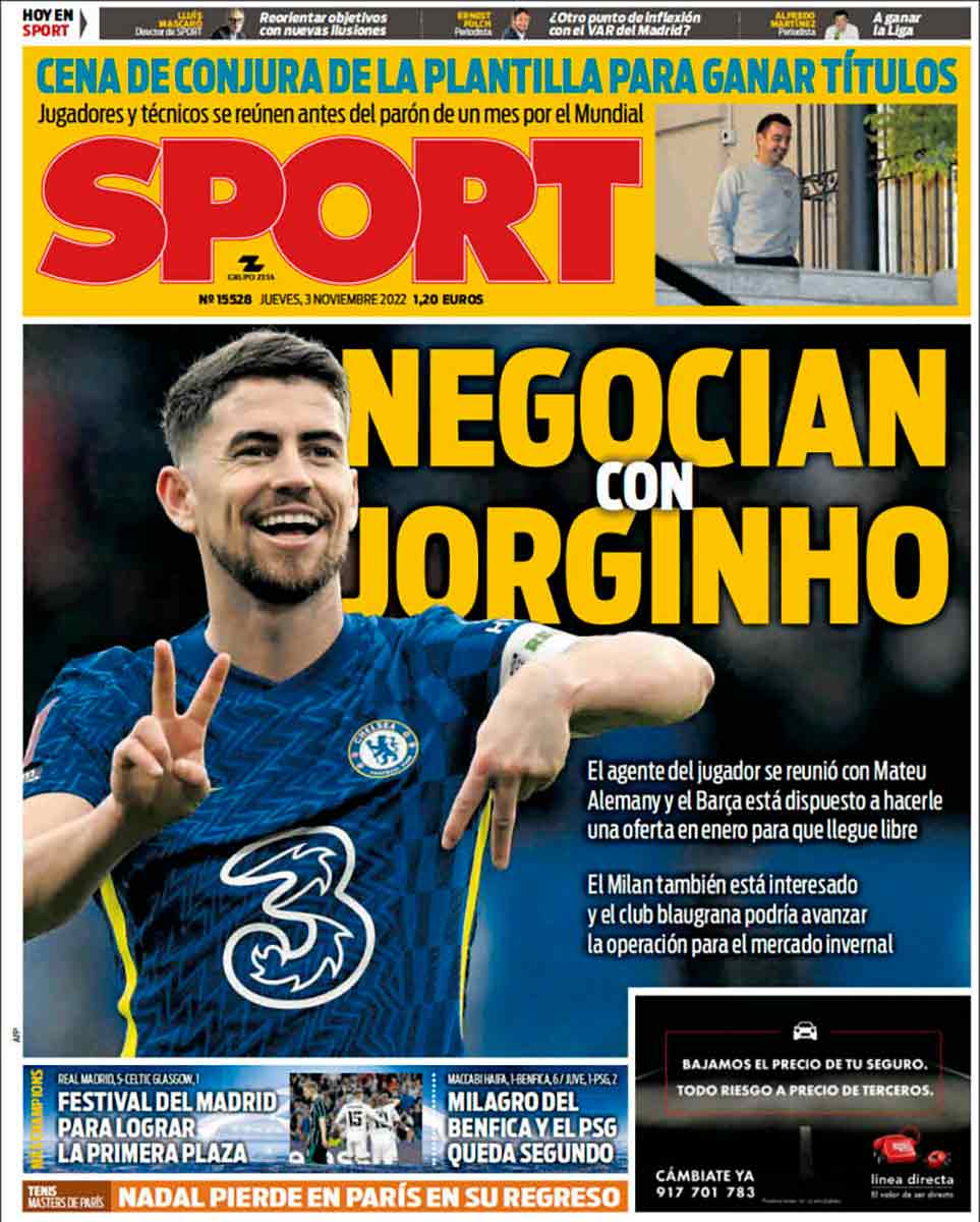 Sport vuelve a dedicar su portada a un futbolista que quiere fichar el Barça. Hoy toca Jorginho. Mañana tal vez será Lusinho, pasado quizá Fernandinho y al otro quién sabe si doña Rogelia, da igual, el caso es poner a alguien.