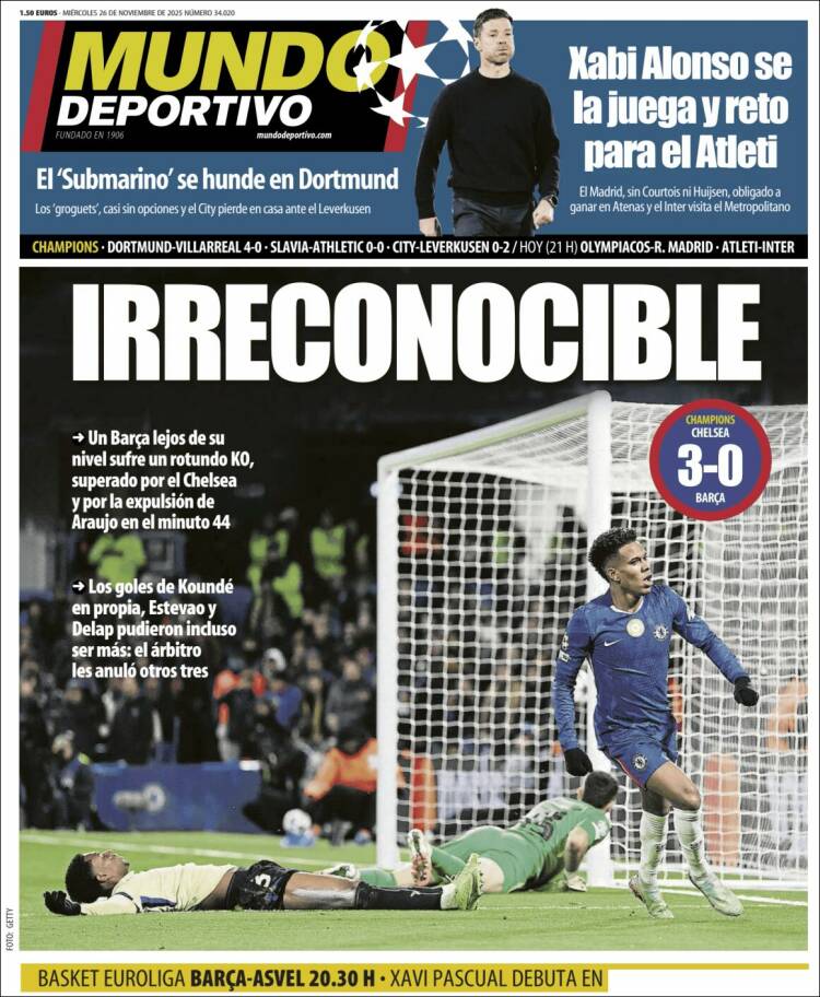 Buenos días, amigos. No podemos decir que la prensa de hoy venga aburrida. Se le pueden aplicar otros calificativos, pero no ese. El equipo cliente de Negreira sufrió un severo correctivo (3-0) a orillas del Támesis. Stamford Bridge fue el escenario de una de las mayores cafradas arbitrales jamás perpetradas a favor de la ominosa escuadra blaugrana, y a juzgar por el regocijo con que lo vivieron las huestes blue parece que no lo olvidan por esos lares. Entre los cánticos que la afición del Chelsea dedicó a la gente de Flick, destacó por lo llamativo un cariñoso “Barcelona will always be Spain”. En La Galerna no nos metemos en política, pero a nadie le escandalizará la sonrisa que la profecía nos suscita, no por el vaticinio político que incluye, sino por lo bien que le habrá sentado a Jan.