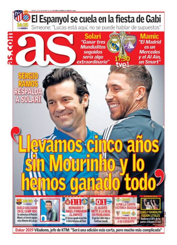 Lo bueno es que esta portada tiene corto recorrido. El madridista de bien piensa única y exclusivamente en el partido de hoy, en cerrar este convulso 2018 con un nuevo título.