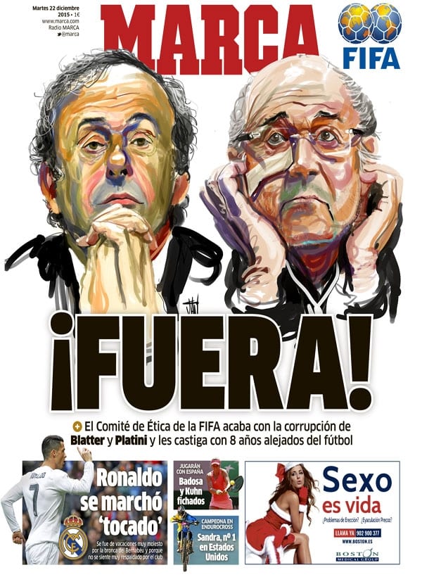 Por su parte, Marca trae a su portada a dos que nos han jodido mucho y que probablemente ya no sabrán cómo jodernos pero esta vez literalmente, por cuanto las cachadas que han sufrido en sus wrongdoings les han dejado sin la posibilidad de seguir haciéndolo. No al menos durante los próximos ocho años. Por fin una buena noticia.
