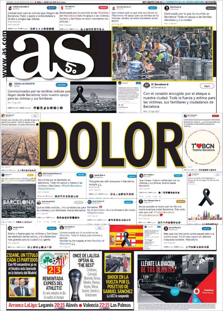 Pedíamos que no hubiera imágenes y hacíamos bien en no pedirlas. No quería ver pero he visto y quiero gritar con mis ojos porque no tengo garganta suficiente. Comprendedme porque cada día escribo aquí un montón de mierdas engoladas y dicto sentencias sobre lo que está bien y lo que está mal de lo que hacen mis hermanos, en particular de hermanos que habitan la ciudad herida en su rambla (Cambrils también en la madrugada con noticias inciertas, con heridos) y que yo sólo quiero abrazar, extender mis brazos alrededor de Barcelona y desencajarme de dolor contigo, ciudad que amo, personas que amo, equipo de fútbol que amo.