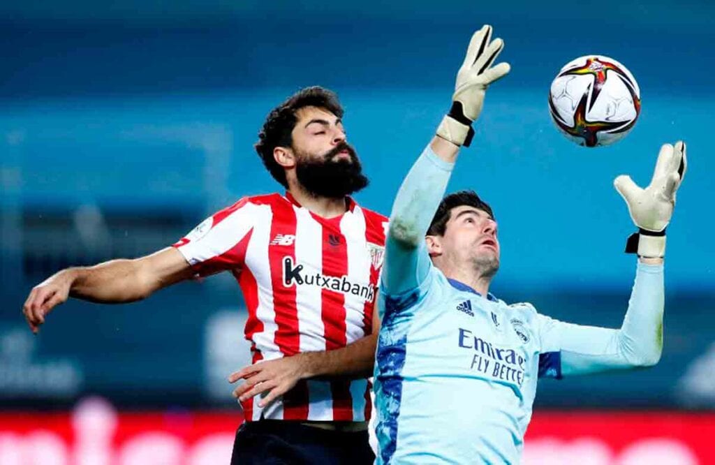 Durante fases prolongadas el Athlétic jugó como el Real en sus buenos días, con una zaga infranqueable por alto, alta precisión en los pases de salida y llegadas al espacio, que le dieron dos goles y al menos cuatro ocasiones inmejorables de ampliar su ventaja, dos de ellas sacadas fantásticamente por Courtois, una por Casemiro y la otra porque el cabezazo de Muniaín salió lamiendo un palo. Eso quiere decir que pudo endosarle tranquilamente una manita al rival, llevado en volandas por jugadores eximios a despecho de ser apenas conocidos, bajo la batuta de un infalible Raúl García.
