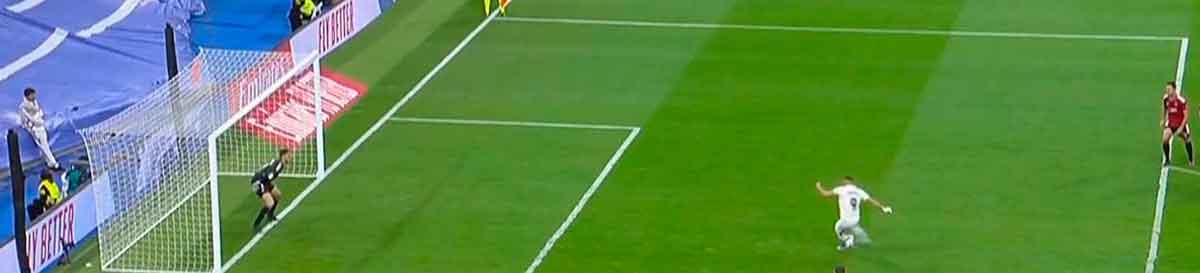 Pasamos ahora al lanzamiento del penalti de Benzema. Observad dónde tiene el pie derecho el jugador de Osasuna.