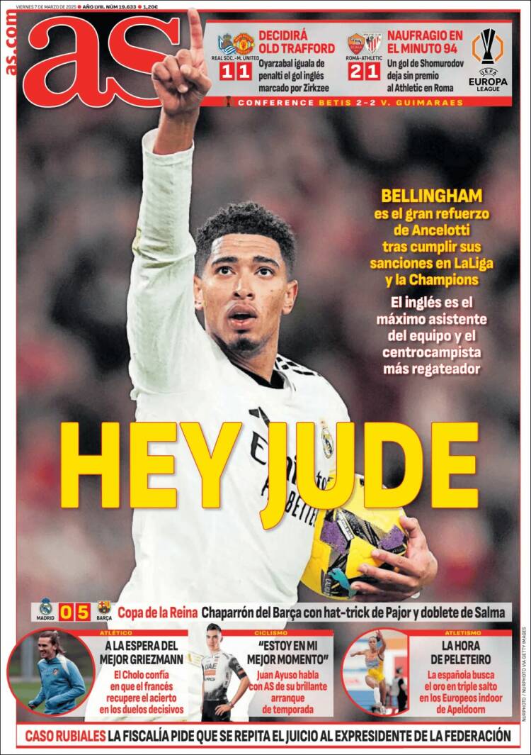 El caso, en otro orden de cosas y en clave madridista, es que Bellingham vuelve después de sus respectivas sanciones en liga y Champions, y que la prensa capitalina se hace eco de la importancia de esta recuperación.