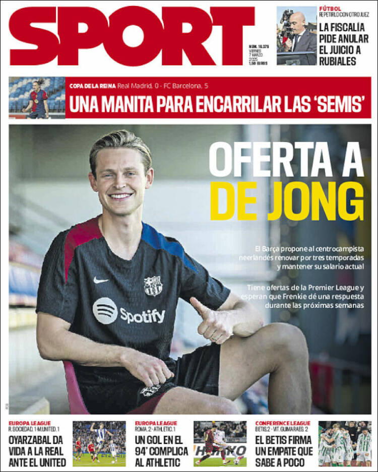 Os dejamos con la portada de Sport, que tal vez alguien querrá ver. Sois veleidosos y tenéis estas cosas.