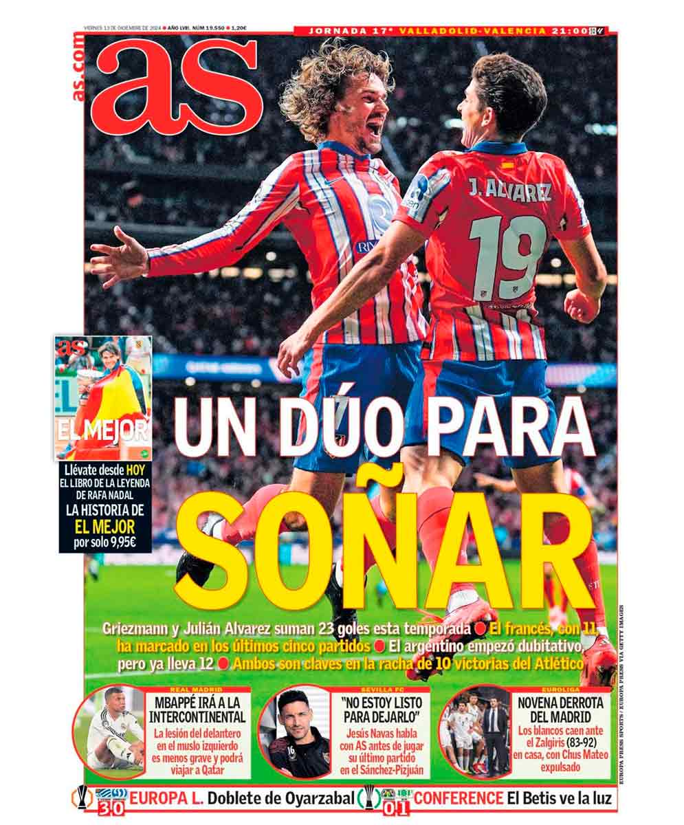 Como veréis a continuación, en las portadas del día solo aparece Mbappé en lo relativo a su lesión, y a la posibilidad de que la misma le reste opciones de jugar la Intercontinental. Nada de nada de lo que acabamos de contaros, seguramente porque contar algo les dejaría en mal lugar.