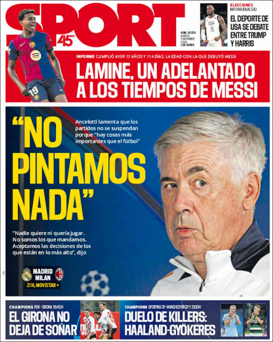 Sin embargo, nunca un Madrid-Milan nos importó menos. Y no lo decimos nosotros, el propio Ancelotti afirma que «no pintamos nada». Es el titular de Sport.