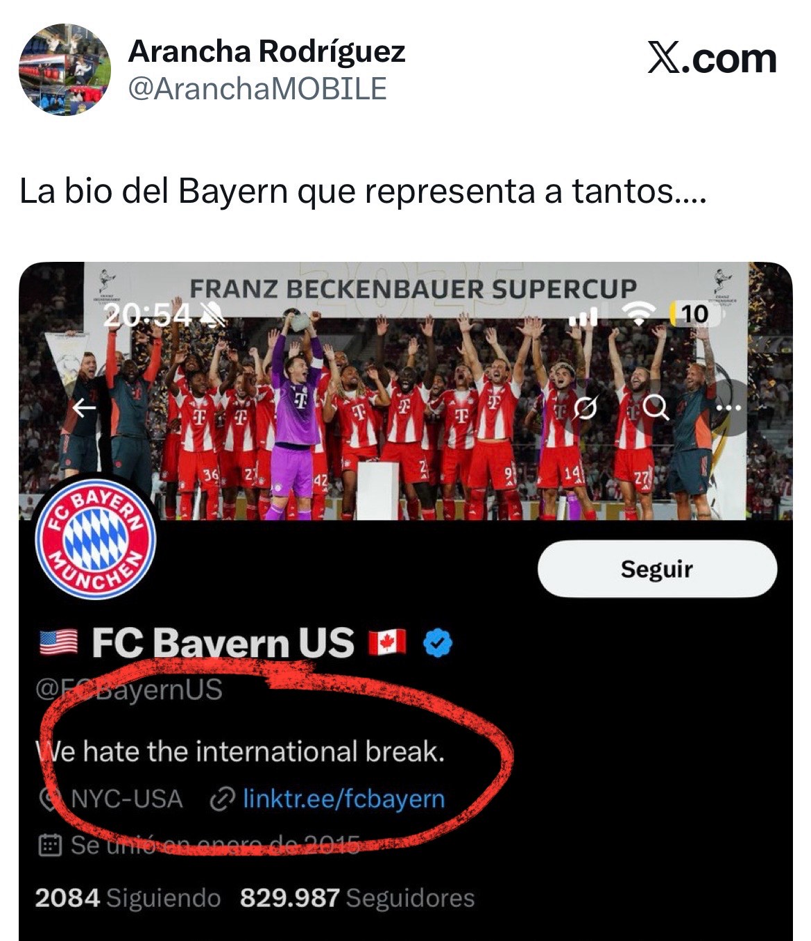 2. Tras la muerte, en efecto, puedes ser quemado, pero en el caso de los parones quienes acaban quemados (y hasta lo empiezan) son los aficionados, no tanto los protagonistas. Los jugadores no se quejan lo suficiente, los hinchas de los clubes se desesperan y a los clubes, que pagan las fichas, no les hace la menor gracia. Ved si no la plausible franqueza del perfil de Twitter del Bayern de Múnich en este preciso instante.