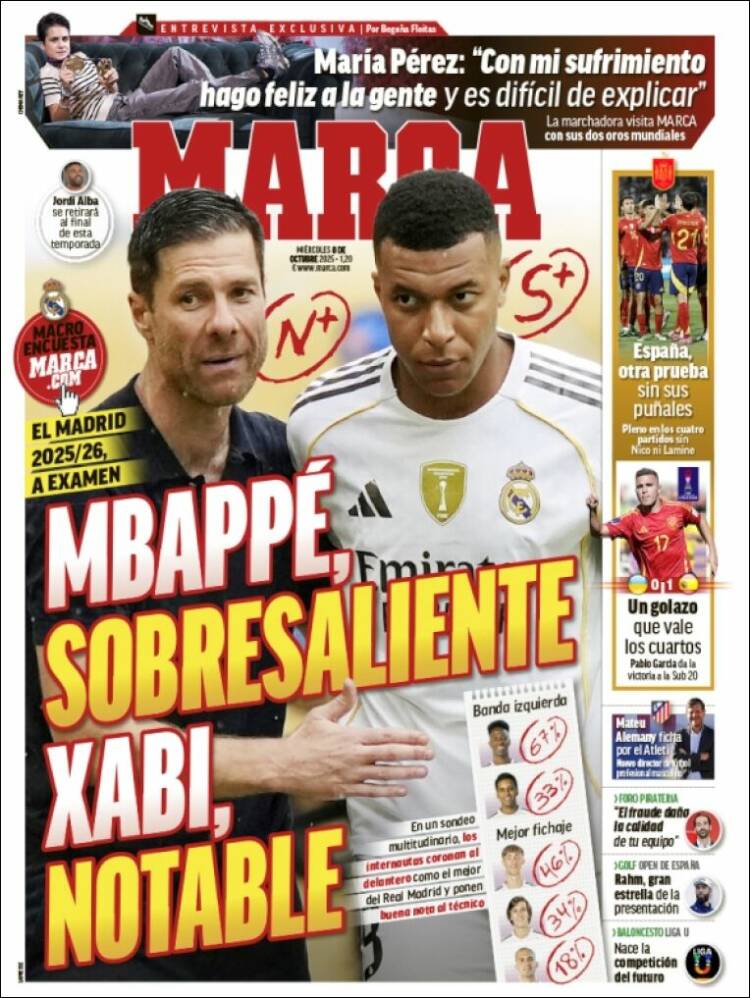 El diario de todas las aficiones ha pedido a eso, a todas las aficiones, que valoren individualmente a los del Madrid. No deja de tener su gracia que, para valorar a los hombres de Xabi, puedan votar los del Atleti y los del club cliente de Negreira, que seguro que les ponen un cero a todos. Se votó en la web de Marca, donde nadie te pregunta de qué equipo eres, de manera que lo mismo puede haber votado Jordi Alba que Toñín el Torero.