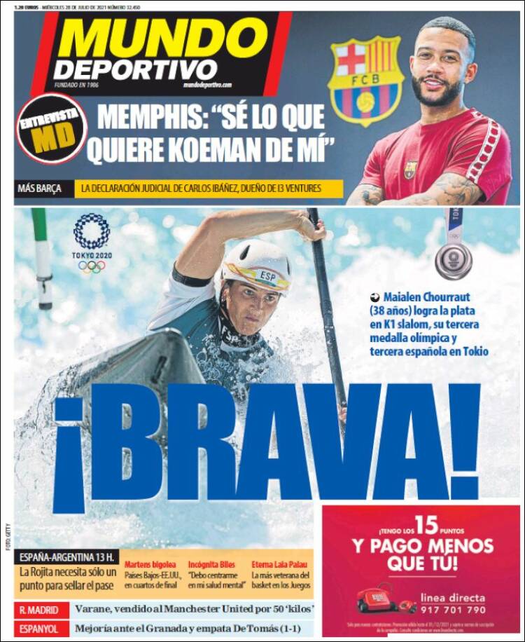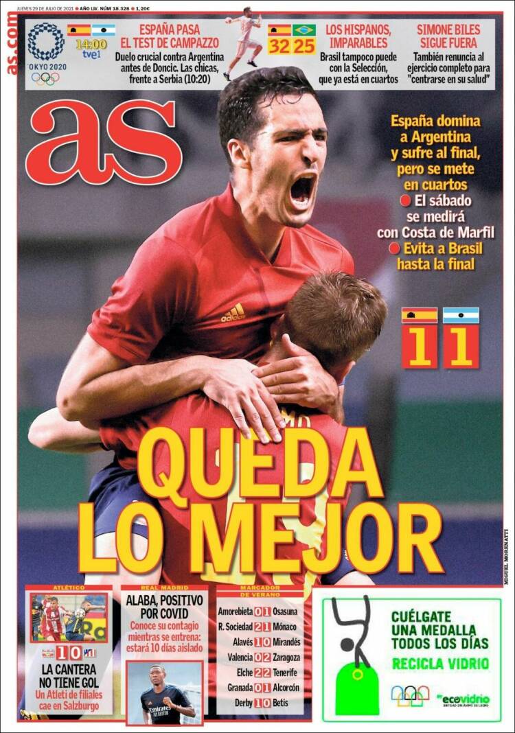 Os dejamos con el resto de portadas, que se debaten entre esto y la actualidad de los Juegos de Tokio. Deseamos a Alaba una pronta recuperación de su Covid, que también viene a las portadas como postrero apunte de fatalidad surrealista.