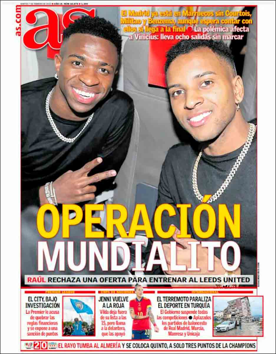A todo esto, el Madrid comienza mañana el Mundial de Clubes sin Courtois ni Benzema, las dos vigas maestras de la campaña pasada, pero al menos no jugará en el país de los raíllos, como ha escrito hoy Antonio Valderrama en La Galerna.