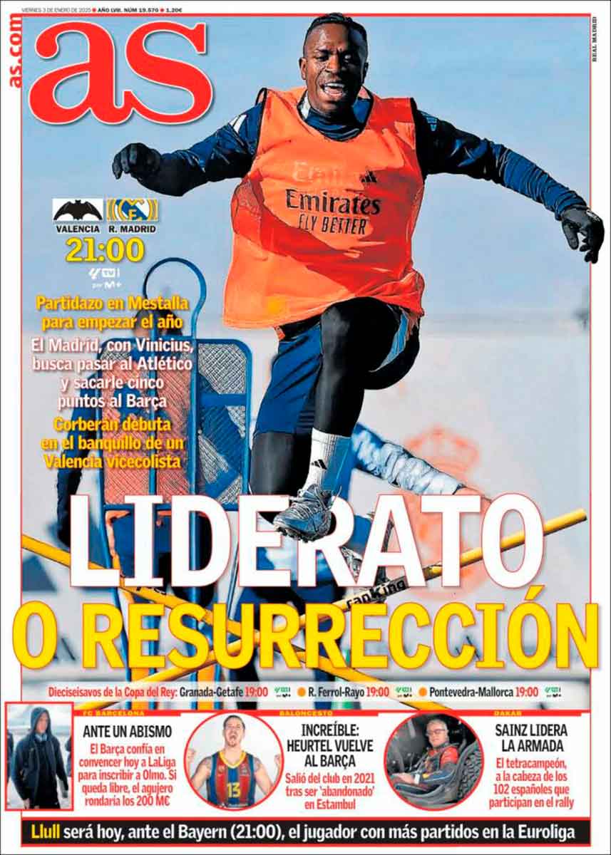 A la espera del cumplimiento de las escrituras, que son las recién transcritas, os dejamos con las portadas de As y Marca, que no se sabe si descontando dicho cumplimiento, o tan solo ventilando el tema con un mínimo apunte porque no saben qué demonios va a ocurrir, están ya en el partido de esta noche en Mestalla, donde esperamos que los de Ancelotti den un buen golpe a esta liga, también conocida en círculos venéreos de la piel de toro como el Coño de la Bernarda o el Castillo de Mete y Saca.